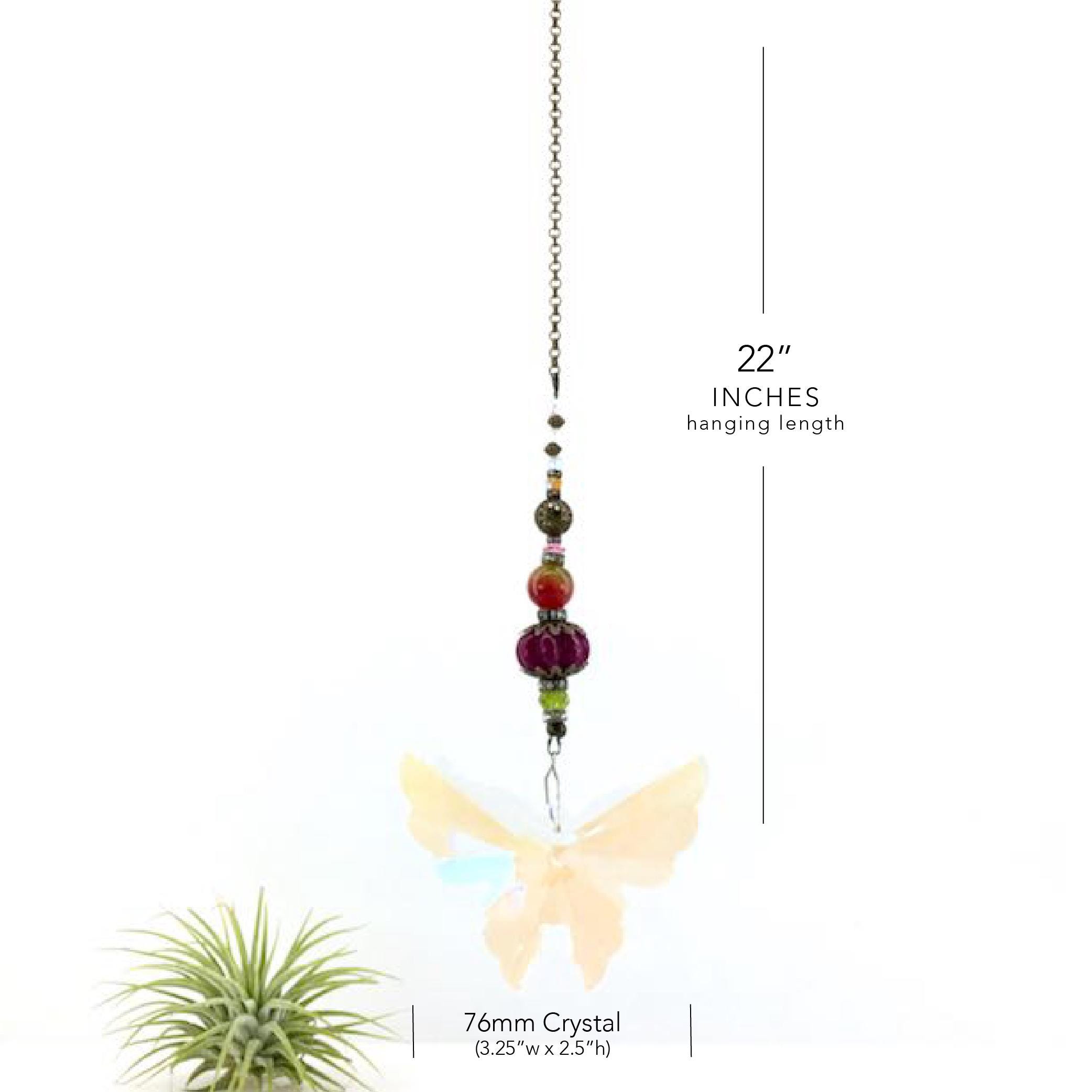 Large Butterfly Crystal Sun Catcher: Boho Rainbow Maker, Gemstone & Crystal Beads