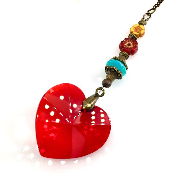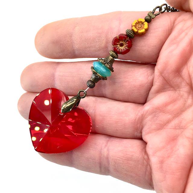 Ruby Heart Crystal Sun Catcher: Bohemian Window & Garden Decor, Czech Beads