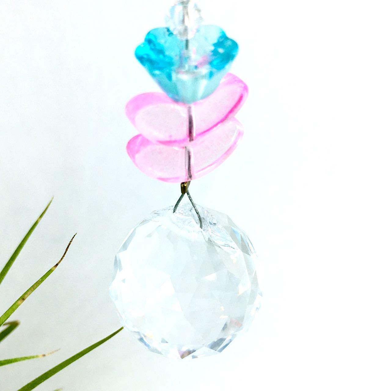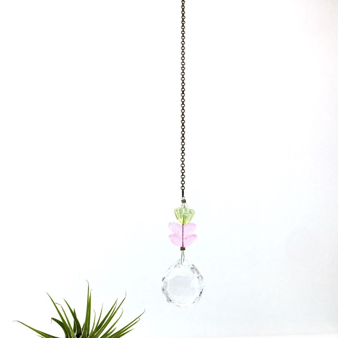Flower Crystal Sun Catcher: 20mm Rainbow Prism Sphere, Czech Glass Beads, Handmade