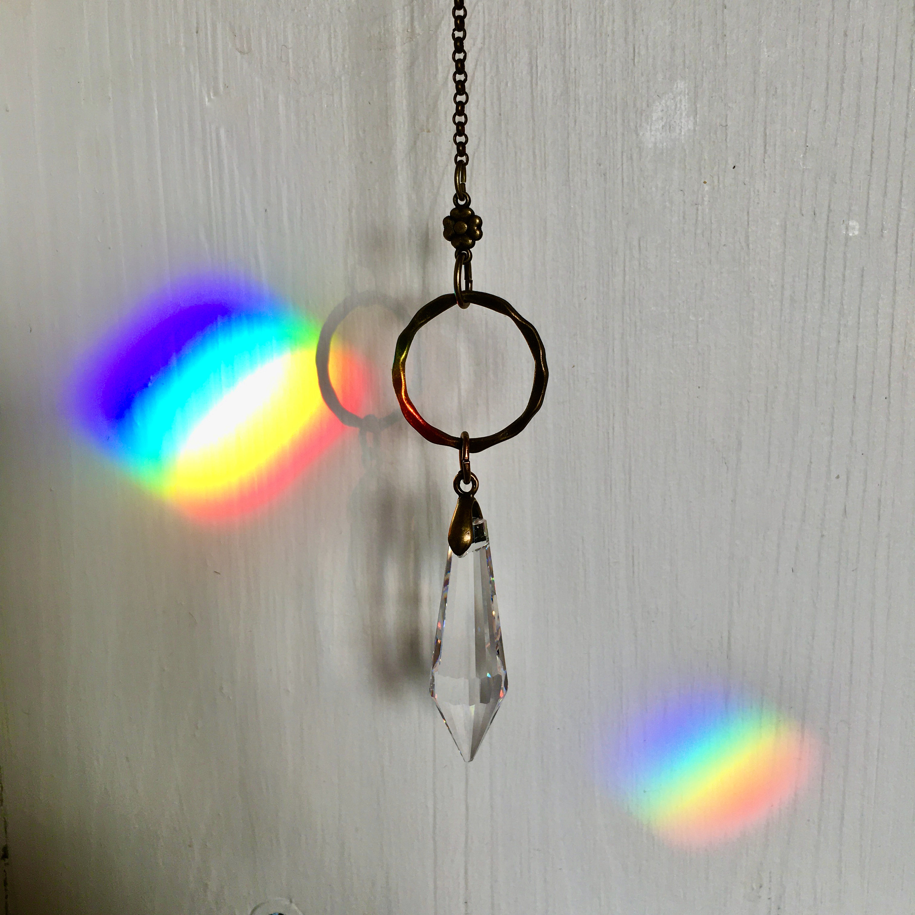 Gorgeous dancing rainbow colors our dazzling, hanging crystal sun catcher will create when the sunlight comes through your window.