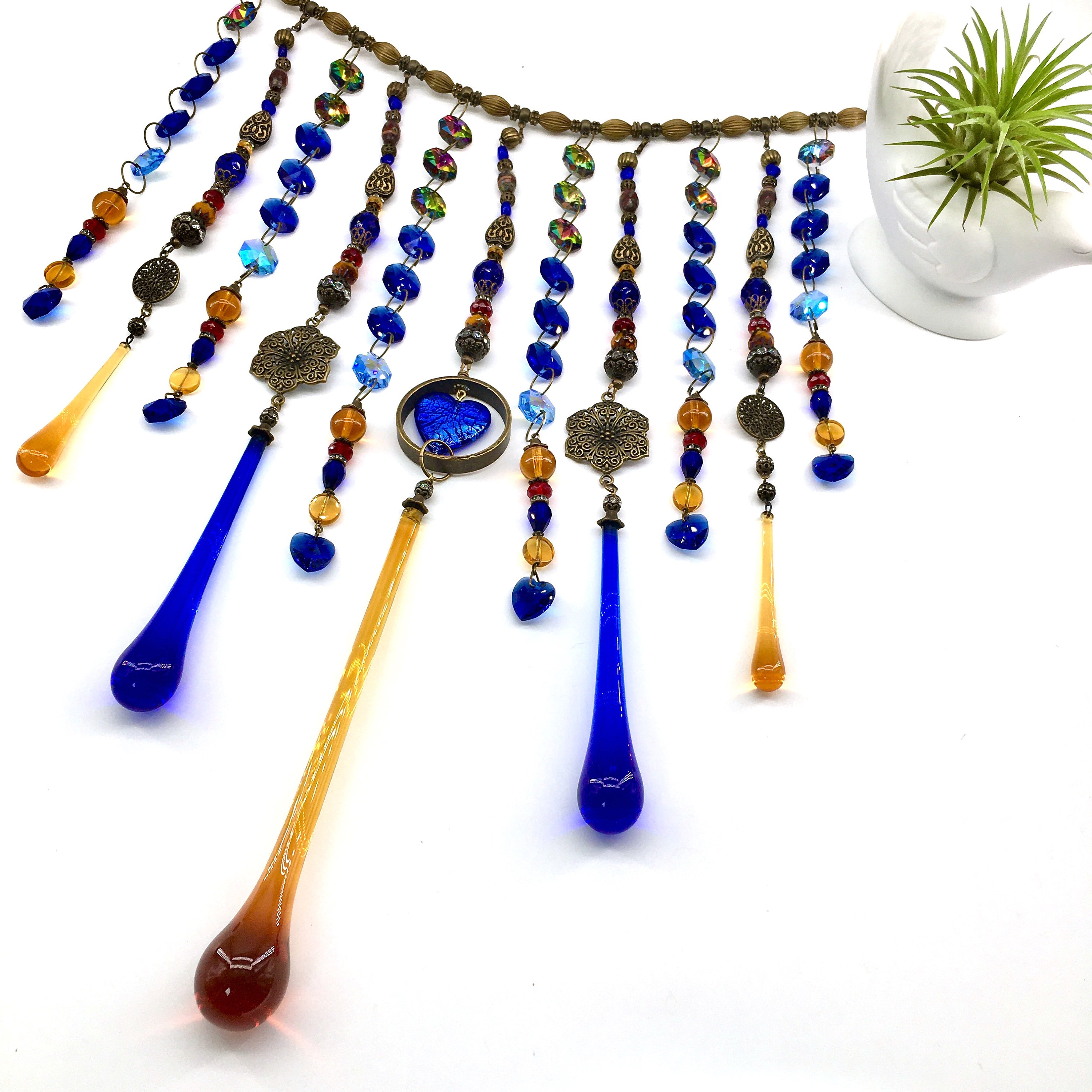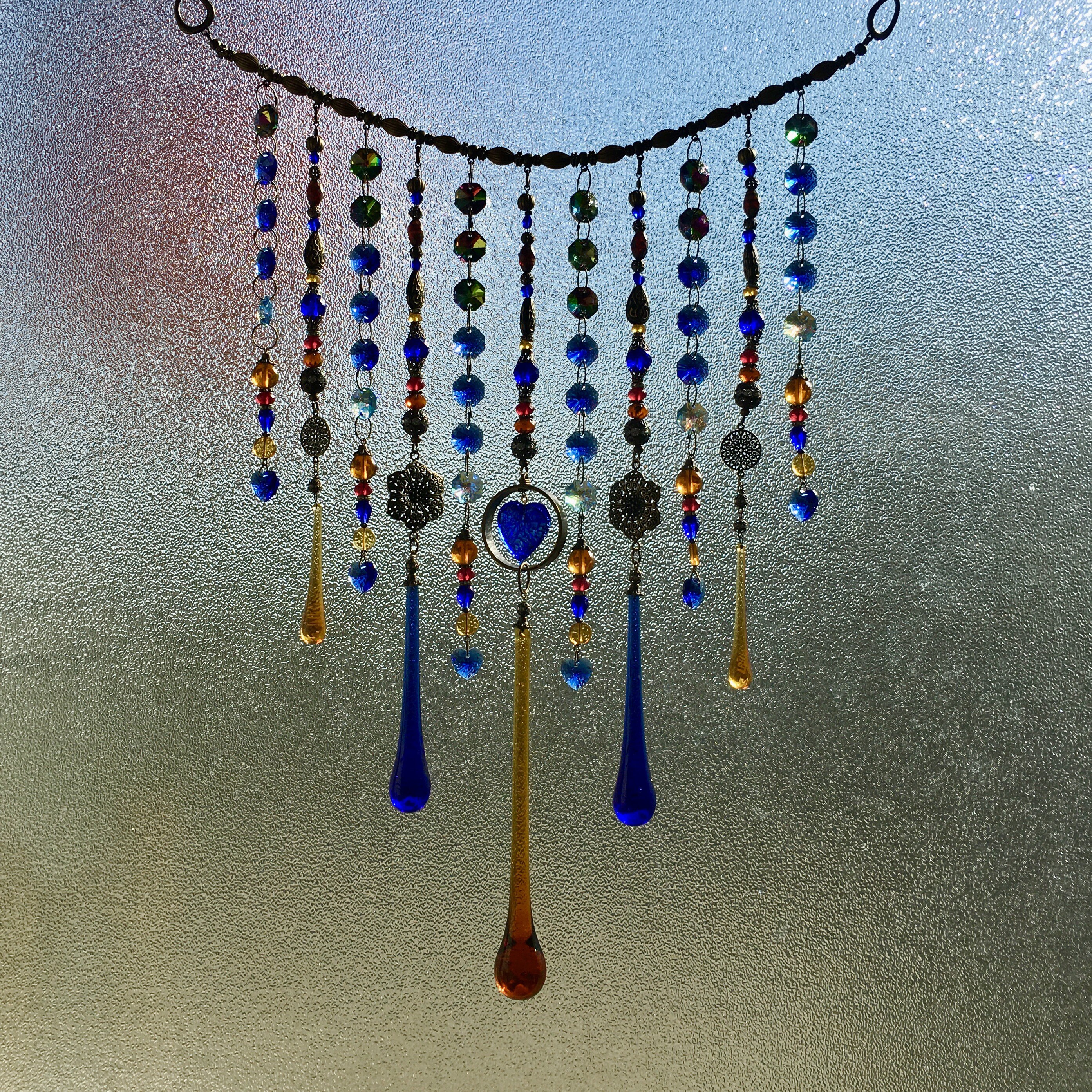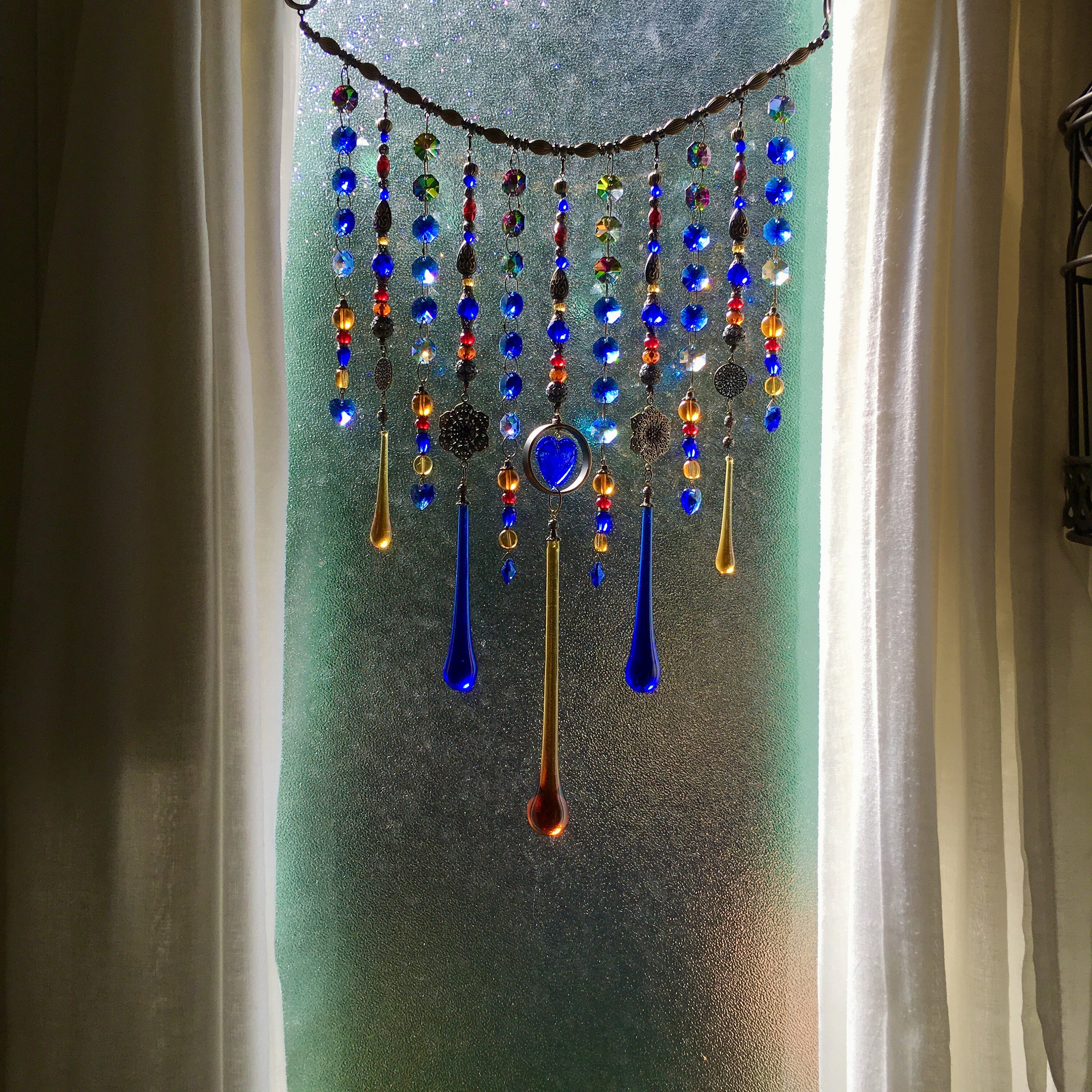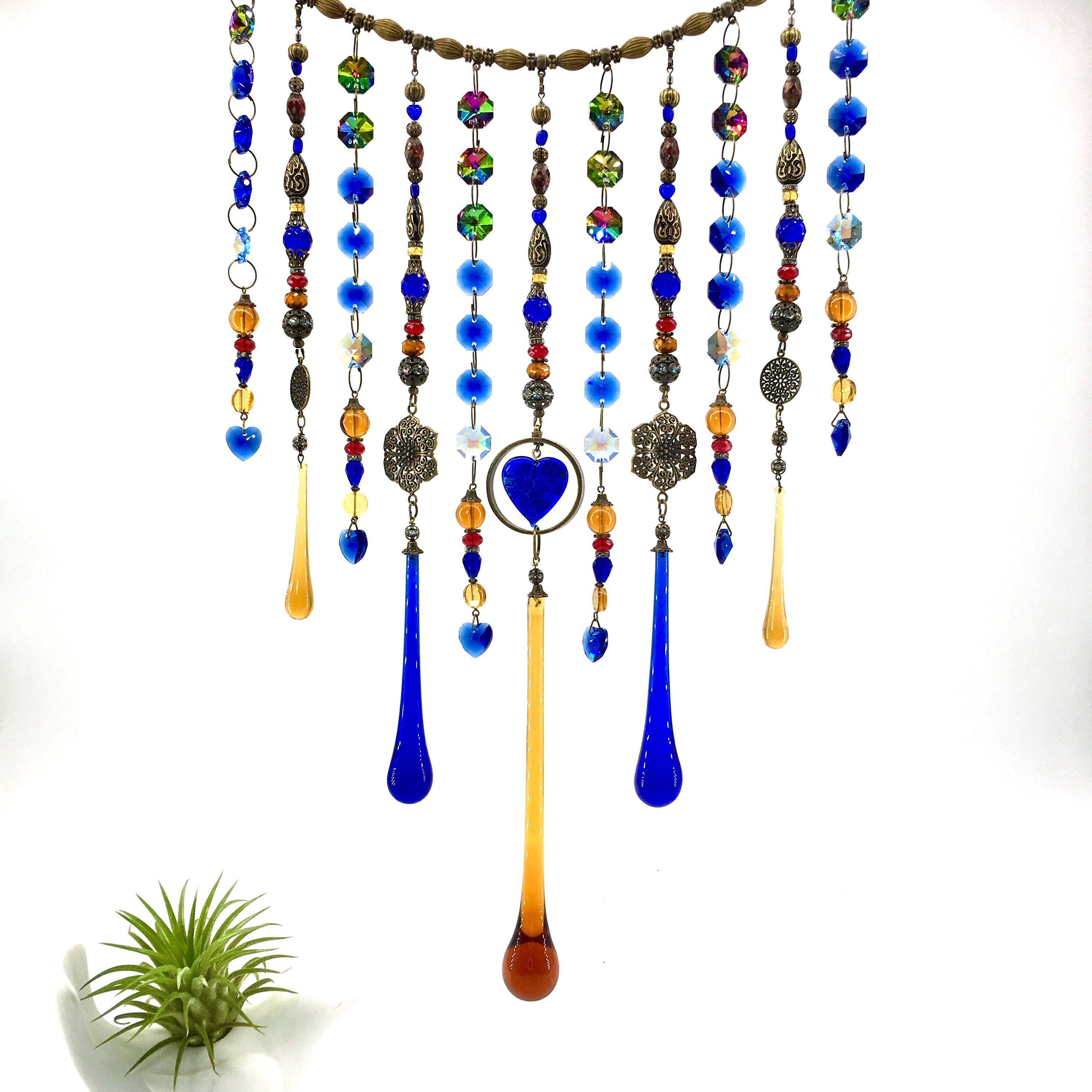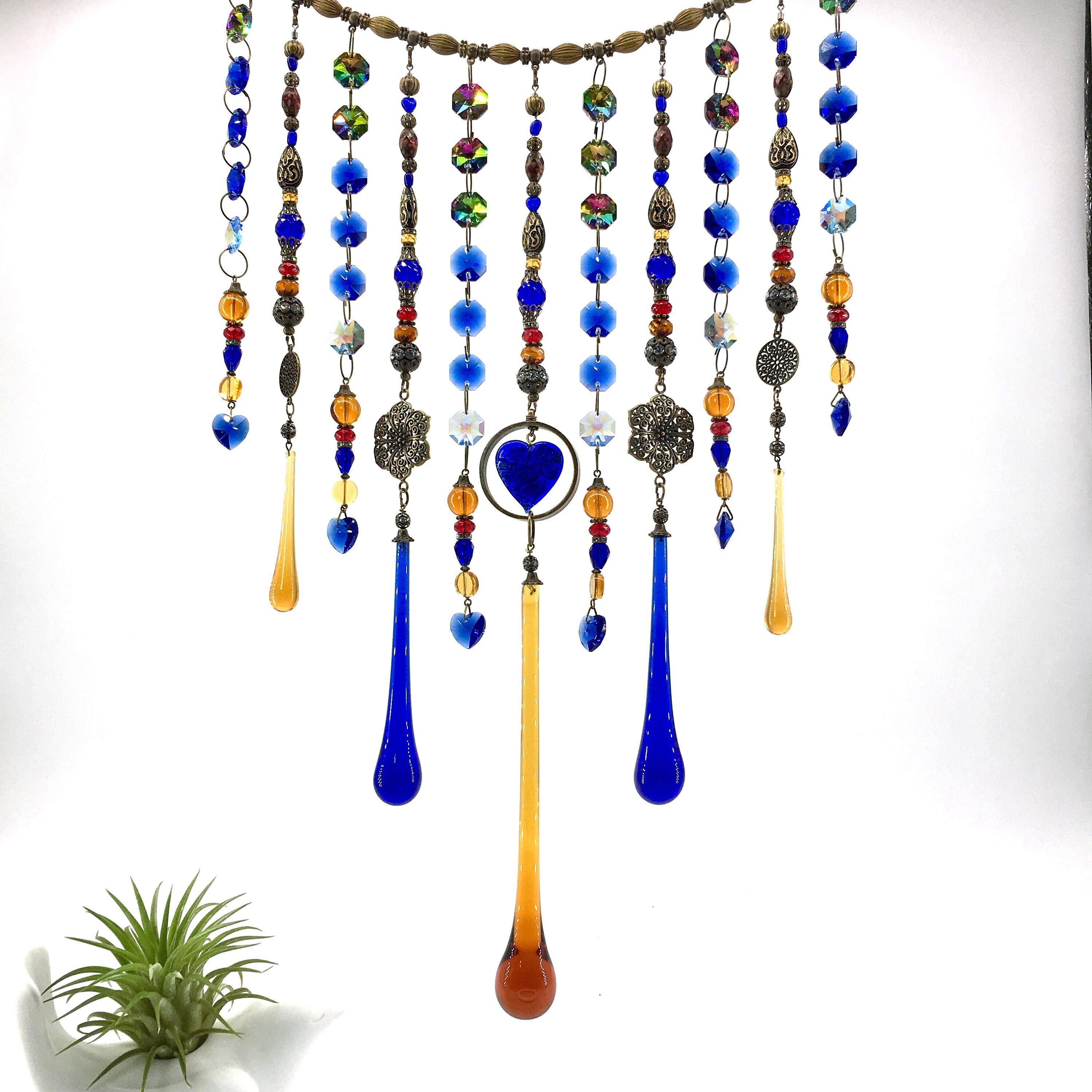 Handmade, Vintage and New Crystal Curtain Hanging, Light Catcher, Boho Beaded Curtain, Window Decor, Garden, Home, Gift, 2 Dirty Birds